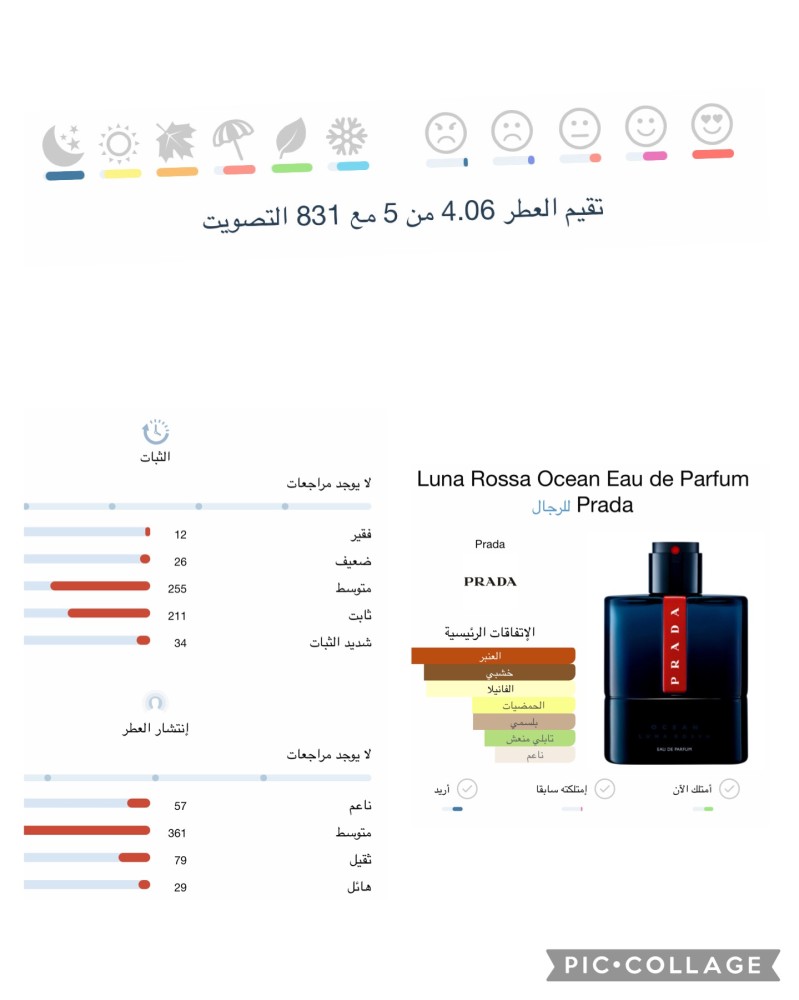 Luna Rossa Ocean Eau de Parfum Prada . Luna Rossa Ocean Eau de Parfum صدر عام 2023. إفتتاحية العطر الجريب فروت; قلب العطر الأخشاب و لبان; قاعدة العطر تتكون من الفانيليا و آمبر اكستريم.