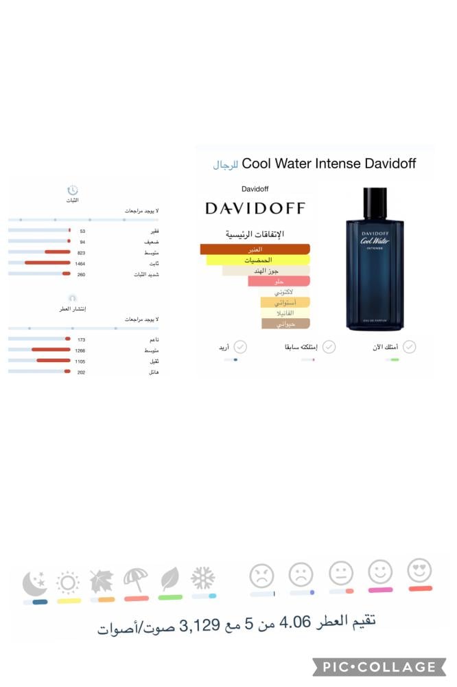 Cool Water Intense صدر عام 2019. Annick Menardo قام بتوقيع هذا العطر. إفتتاحية العطر الماندرين الأخضر; قلب العطر عصير جوز الهند; قاعدة العطر من العنبر.